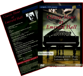 Jelinek – Piano Lubomir Malý – Viola Details and ordering information DVD–VIDEO “Classic Hour at Emerald Hall” ![]() ![]() Content: Michel Corrette (1709 - 1795): Sonata B-flat major Allegro Aria - Andante Minuetto L. van Beethoven: Notturno D